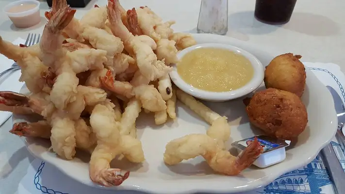 Across the Bridge of Lions from downtown, this hole-in-the-wall restaurant is recognizable for the line of customers who wait patiently for fried shrimp (the specialty). — Fodor's