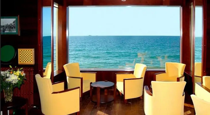A gracious welcome and infinite sea views greet you at this beachfront hotel, handsomely accented with a terra-cotta facade and stylish mansard roof. — Fodor's