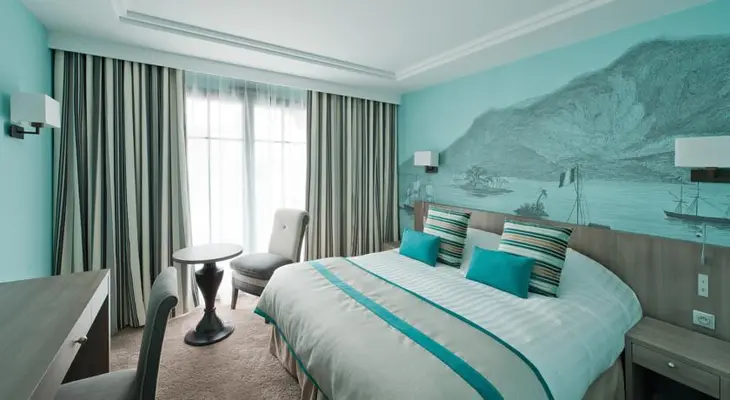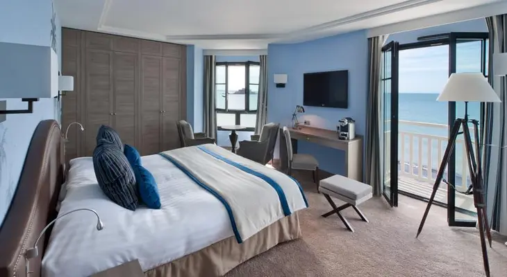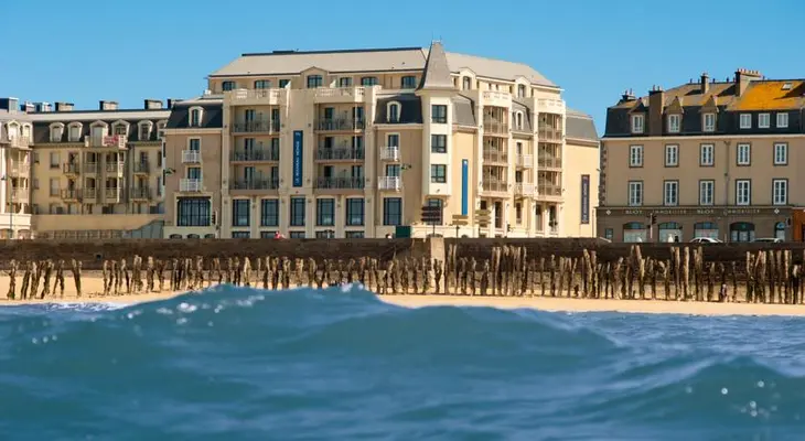 “The nautically themed Hotel Le Nouveau Monde, an upscale property built in 2012, faces the sea in Saint-Malo, France.”