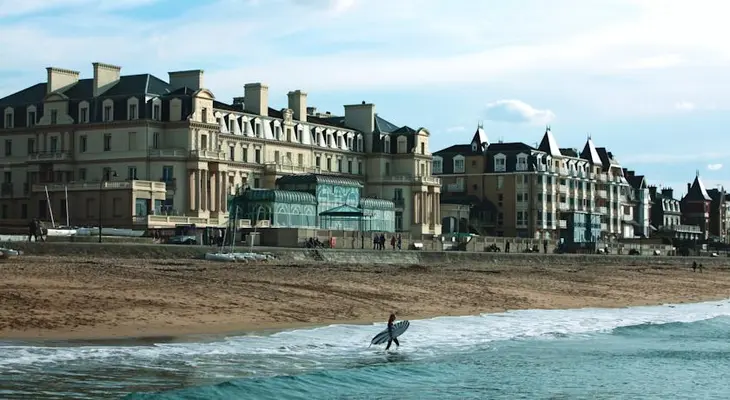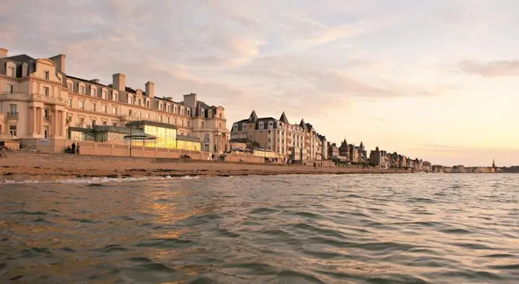 “Housed in a beautiful Belle Epoque building on the beach in a quiet area of Saint-Malo, this 178-room four-pearl property has a popular restaurant and spa.”