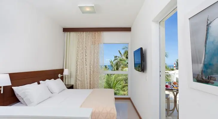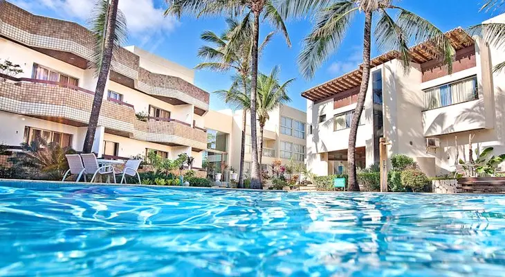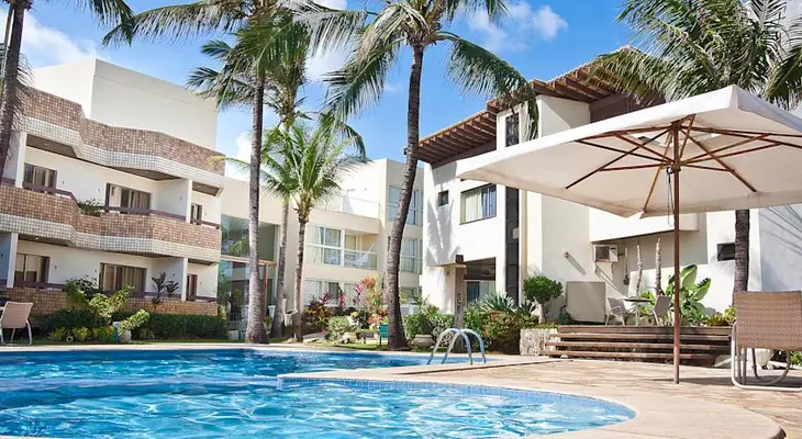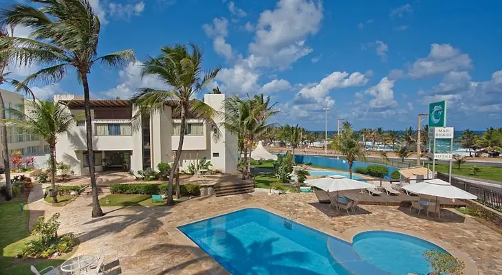 “The upper-middle-range Mar Brasil is modern (having been updated in 2010), clean, and comfortable, directly across from the beach and 15 minutes south by car from the airport.”