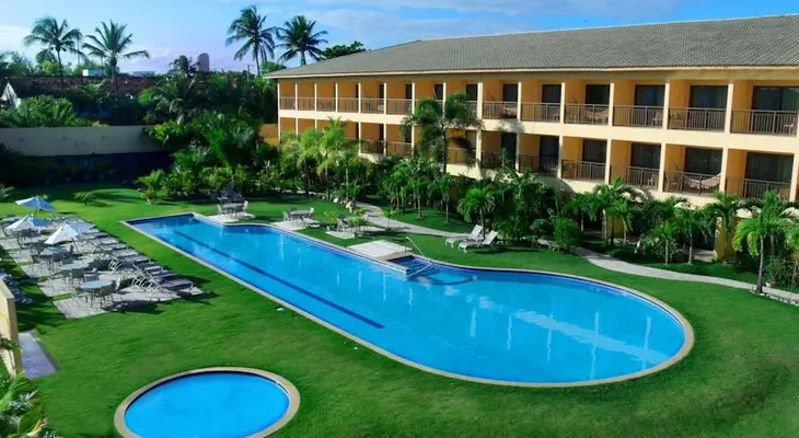“Catussaba Resort Hotel is a traditional three-pearl property fronting Itapua Beach, a 30-minute drive from Salvador’s historic district.”
