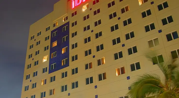 “The no-frills Ibis brand specializes in tidy, comfortable rooms. Prices are low because the hotel does not offer services such as dry-cleaning, buffet breakfast, or valet parking.”