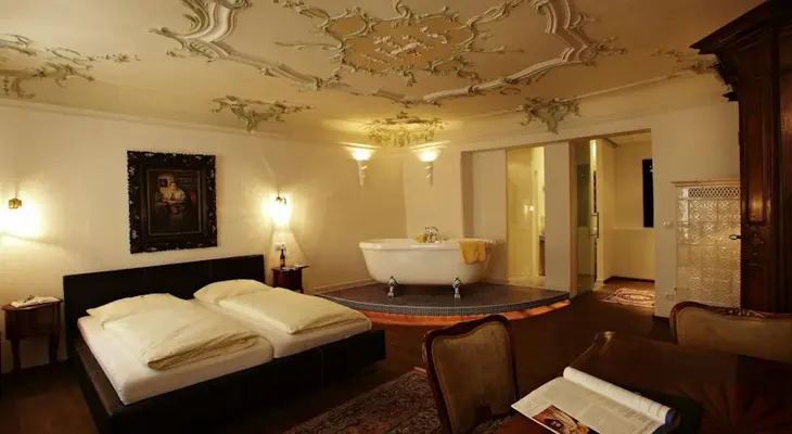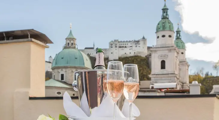 Beautifully situated in one of the city's prettiest quarters, this eccentric hotel has perhaps the most extraordinary foyer in all of Salzburg. — Lonely Planet