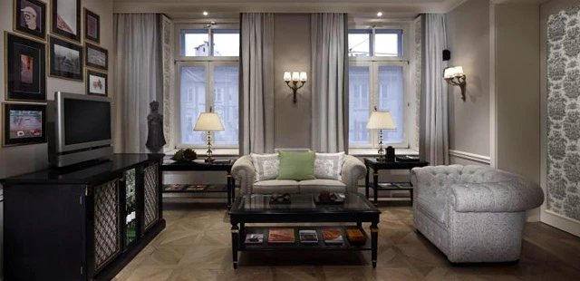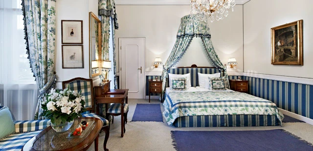 "Scattered with oil paintings and antiques, the rooms have gleaming marble bathrooms, and fortress or river views." Full review