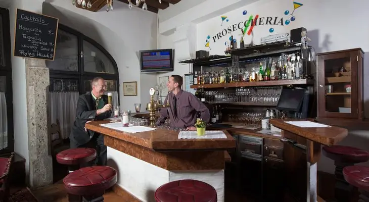“The Stadtkrug (dated 1353) hits an idyllic, romantic, and quiet vibe, thanks to its mountainside setting.”