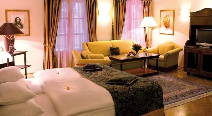 “Behind historical walls, not far from Mozartplatz, find the beautiful rooms of this hotel with their classic, elegant style.”