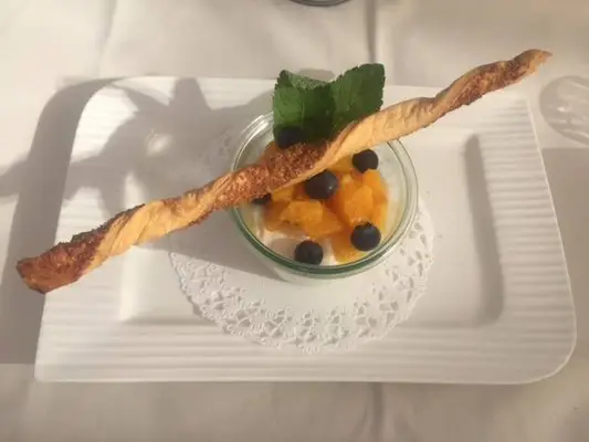 Blaue Gans is a pleasantly light and airy restaurant complete with a pretty vaulted ceiling and some attractive tables outside on the terrace. — Michelin Guide