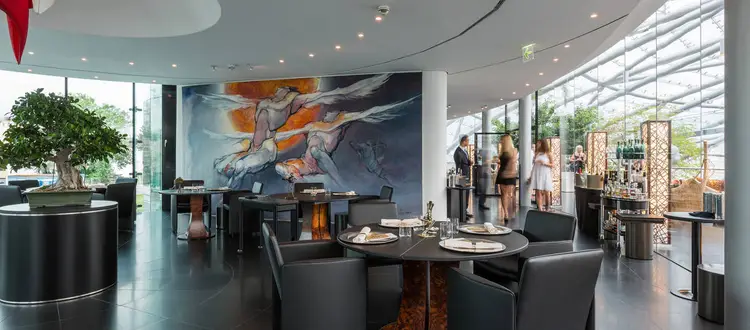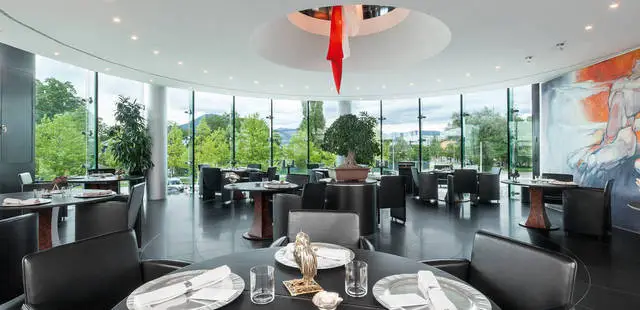 “An unusual concept, the architecturally impressive Hangar-7 is both a Red Bull exhibition space and an ultra-modern luxury restaurant serving top quality creative cuisine.”