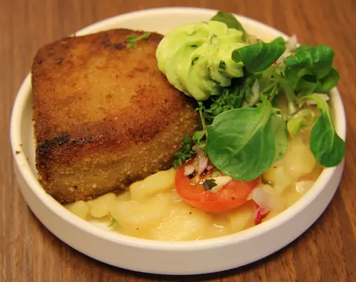 “Daily specials include typically Austrian dishes such as Wiener and chicken schnitzels, trout, cold marinated herring, Hungarian goulash, hearty regional soups, and many other solid selections.”