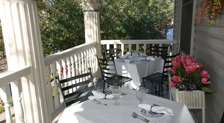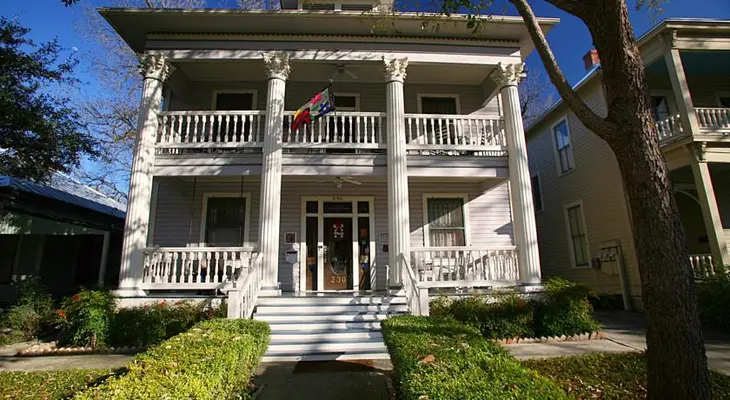 “The first B&B in the King William Historic District, Brackenridge House has a two-story veranda overlooking a tree-lined street.”