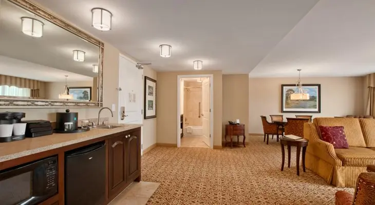"Each suite offers two rooms—separate living and sleeping spaces—with a pull-out sofa, flat-screen TVs with cable and in-suite movies in each room." Full review