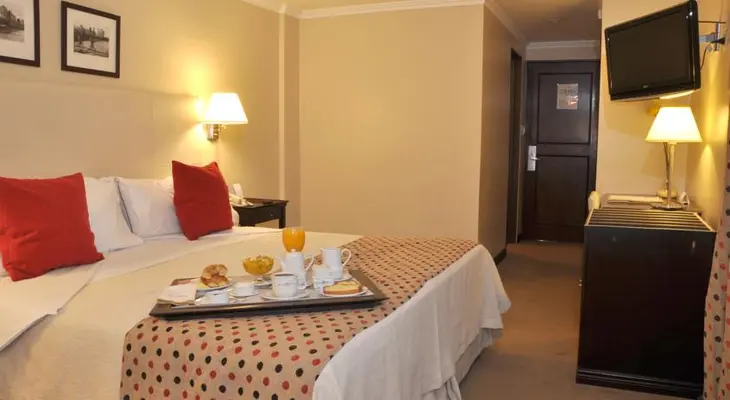 “Well located one block from Bariloche’s Centro Cívico and about two from Lago Nahuel Haupi, this glossy hotel has bright, spacious double rooms.”