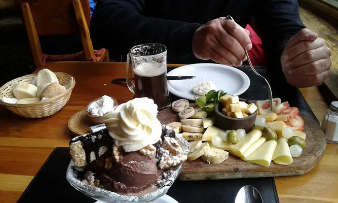 “The menu is quite large. Start off with an appetizer of the smoked meats, seafood, and cheese for which the Familia Weiss is known.”
