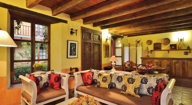 “A beautifully renovated 18th-century house with lots of wooden pillars, balustrades and an old-world atmosphere, Casavieja boasts large comfortable rooms with modern amenities arranged around flowery courtyards.”