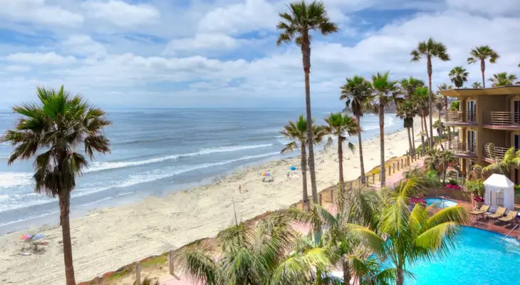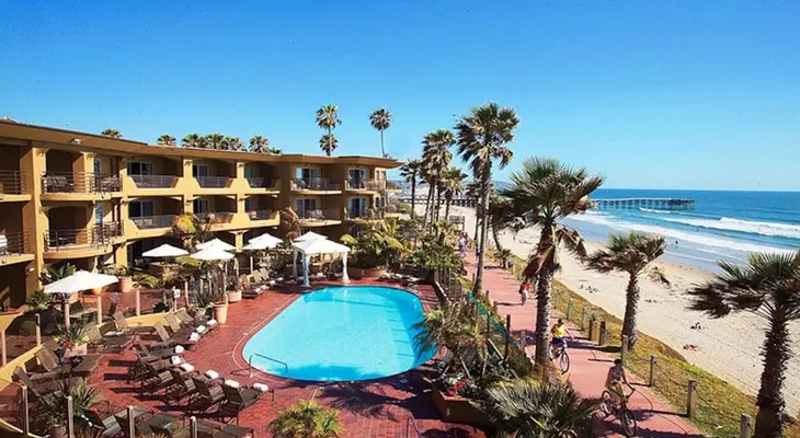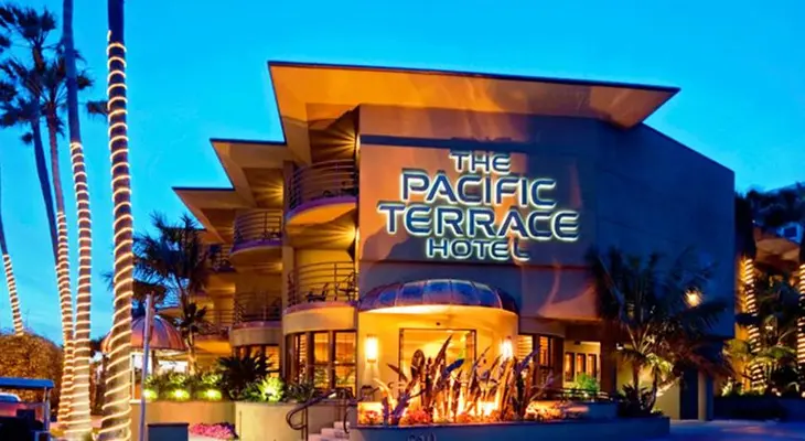“Situated between the lively Pacific Beach and jet-setting La Jolla communities, the beachfront Pacific Terrace Hotel is conveniently located.”