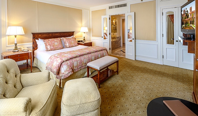 “223-room hotel filled with gilded antiques, chandeliers, and 18th-century tapestries.”
