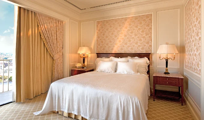 "Baccarat crystal chandeliers, Persian carpets, and French tapestries are just backdrops to the gracious service."