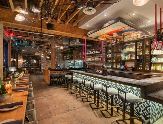 "A colorful high-design eatery for Mexican street food and clever cocktails in The Headquarters at Seaport District downtown." Full review