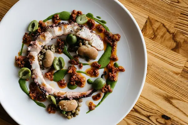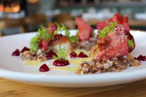 “Rustic, seasonally driven New American dishes, as well as local craft beer and artisanal wines, headline this inviting, modern Hillcrest space with an expansive outdoor patio.”