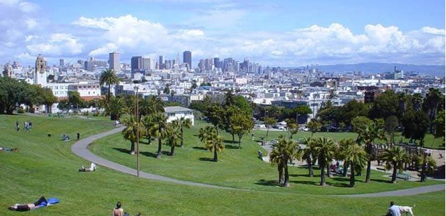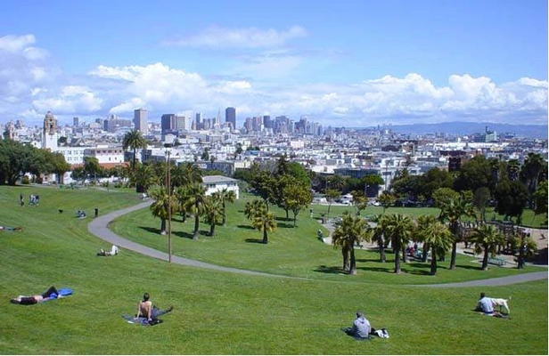 “True to its name, this park founded in 1867 offers splendid vistas over the city to Golden Gate Bridge as a reward for hiking up the steep hill ringed by stately century-old California oaks.”