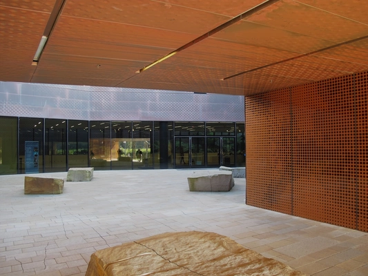 "A total of 950,000 pounds of copper was used to sheath the building and over the course of the next decade it will fade from bright copper to cinammon." Full review