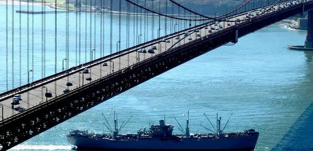 "The Jeremiah O’Brien, docked at San Francisco’s Fisherman’s Wharf, is one of the few surviving Liberty Ships — the 2,700 merchant ships built to supply food and munitions to European allies in World War II"