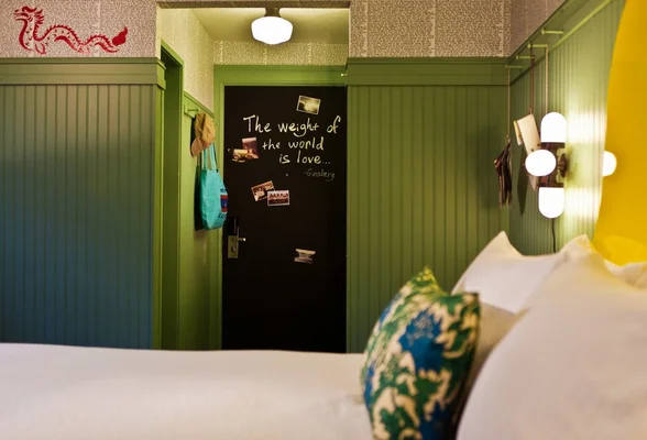 "Steps from the Chinatown Gate, this trendy, eco-friendly hotel has a lobby with wild designs and furniture, and guestroom decor ranging from creamy whites to cherry red."