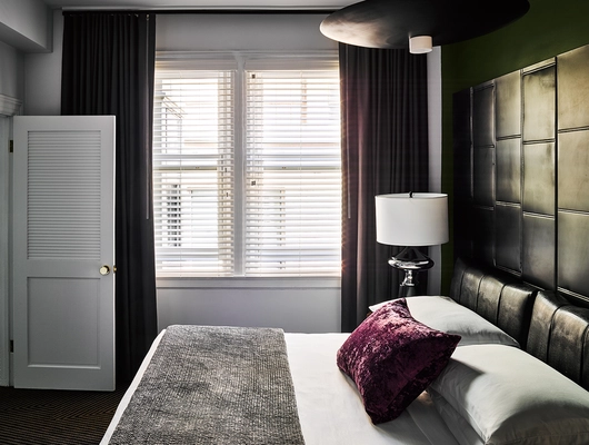 "Featuring soaring ceilings, industrial light fixtures, and crushed velvet pillows, all the guest rooms are exercises in contrast...which is to say, eclectically San Francisco." Full review