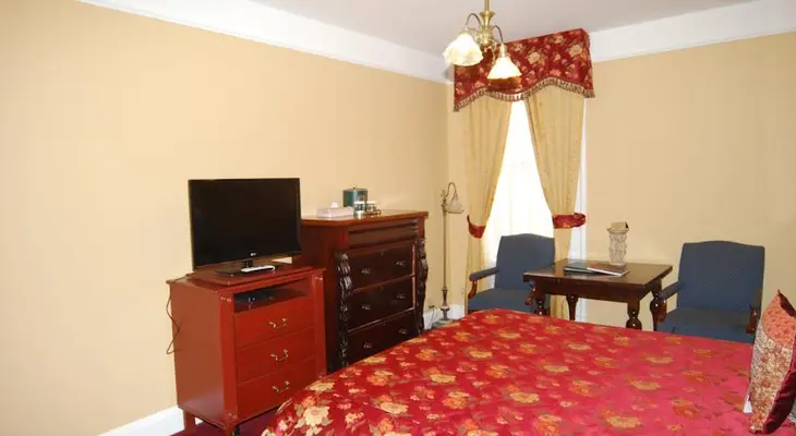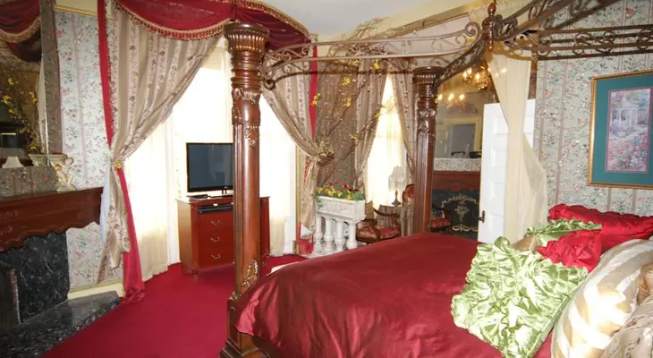 "This Victorian mansion has a large comfortable parlor decorated in burgundy brocade, lace, and heirloom antiques." Full review