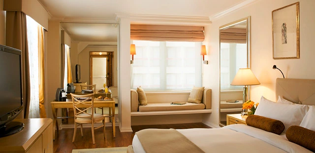 "A stay here is as soothing as a cup of hot chocolate and as serene as a weekend at a country house, thanks to insulated glass windows that block out urban noise."