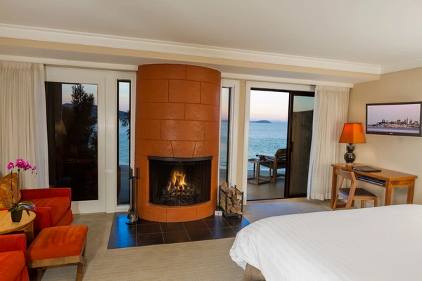"Every room overlooks the water, whether that’s towards Alcatraz, Angel Island, the city, or all three. Then there’s the comfort – some rooms have fireplaces, others decks by the water"