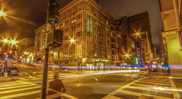 "Located between Mason and Taylor, catty-corner from the Curran and Geary theaters, this place sits solidly in the middle of the middle ranks, alongside the bohemian-tinged Rex Hotel." Full review