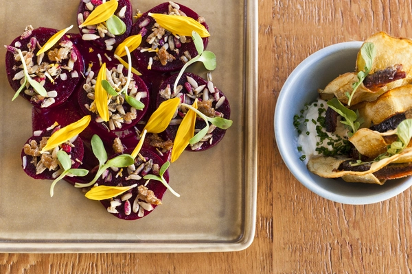 Chef Dominique Crenn is equal parts poet and chef, as evidenced by the creative titles of her tasting menu, which includes dishes like “the sea” or “walk in the forest.” — goop