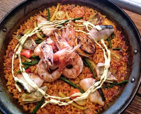 “Small groups nosh on authentic Catalan fare-think bite-sized tapas such as salt cod croquetas with piment d'Espelette allioli-over glasses of sparkling cava.”