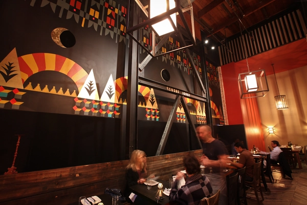 "At Duende, chef Paul Canales channels his Basque heritage into pintxos and paellas in a whimsical setting (colorful murals; fence posts as floorboards)." Full review