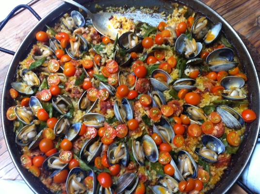 "A hearty tapas menu includes classic items like crispy patatas bravas, pressed melons with air-cured beef and padrones fritatas, while larger dishes feature paella, fideua and skirt steak. " Full review