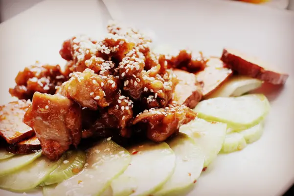 "A local and visitor favorite, this coloful spot serves huge portions of delicious dishes that are meant to be shared, such as lightly fried sesame chicken with sweet potatoes and garlic." Full review