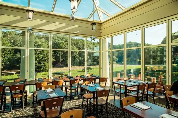"Behind sister restaurant Beach Chalet, little bit slicker, but with similar menu of overpriced comfort food. Glass walls and ceiling equal greenhouse effect."