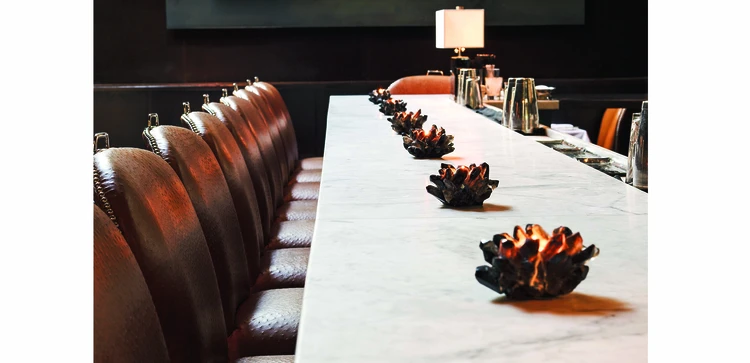 "The menu is stuffed with incredibly rich fare—foie gras with grape gelée, veal sweetbreads, sliced potatoes cooked in duck fat, and buttered Maine lobster."