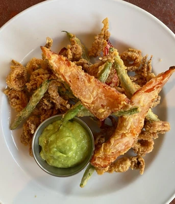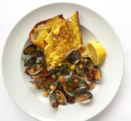 “Perfect burgers and juicy roasted chicken, cooked over an open fire, complement a menu offering a variety of Mediterranean dishes.”