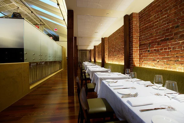 Instead, the restaurant has a modern feel, with high ceilings, white leather chairs and an entrance that looks more like a concierge desk than a host stand. — San Francisco Chronicle