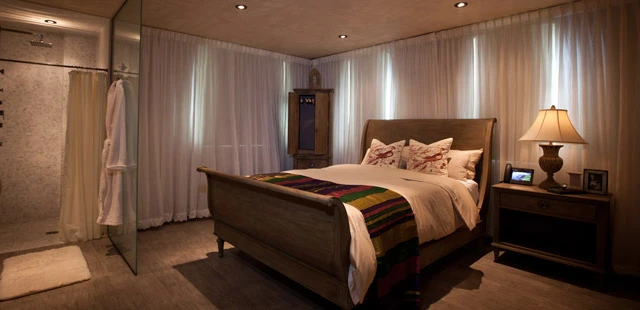 "“Partial Lagoon View” suite doesn’t exactly scream romance...but we’re pleased to report that this suite is perfect for couples, who will love the Grecian-themed decor and wooden sleigh-style bed. "