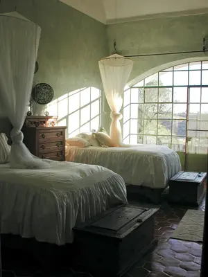 “This 450-year-old hacienda has been converted into a dozen rooms arranged around an inner courtyard.”