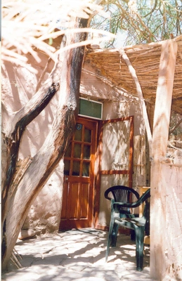 “Thatched roofs and adobe walls characterize the carpeted rooms at this lovely hostel.”