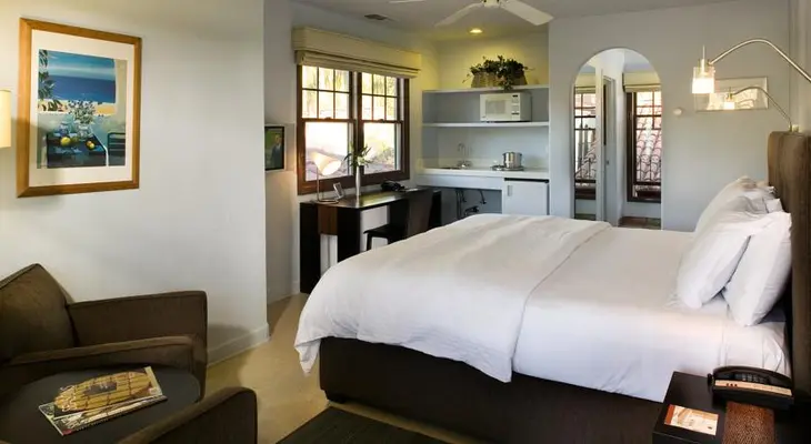 “A half-block from the beach (sorry, no views), Casa del Mar is an excellent-value Spanish-architecture inn with one- and two-room suites in addition to standard-size rooms.”