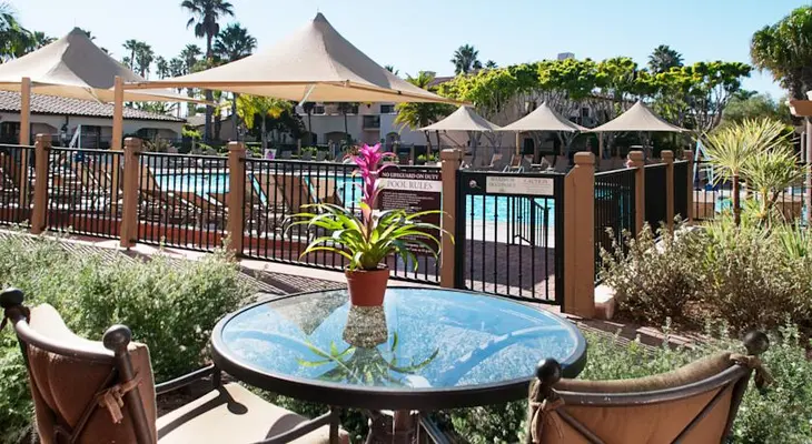 "The complex centers on a palm tree–lined plaza and includes the Spa del Mar, a spacious pool and hot tub, three tennis courts, three restaurants and a coffee shop." Full review