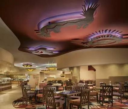 “The Buffalo Thunder is a sprawling, upscale Hilton resort 14 miles north of Santa Fe on the Pojoaque Pueblo reservation.”