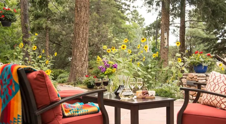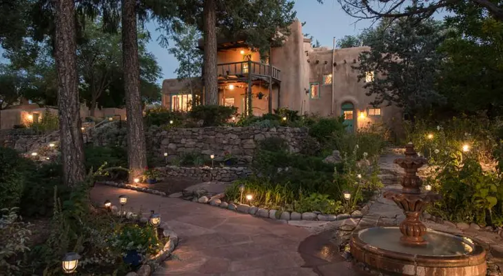 "An historic, rambling adobe villa surrounded by gardens, this elegant inn is a tribute to its owner, Witter Brynner, and his literary and artistic friends."
