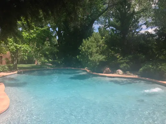 “Occupying an early 18th-century hacienda surrounded by 24 quiet wooded acres and with a pool and a tennis court, Rancho Nambe is really a miniature resort, and a wonderfully relaxing hideaway.”